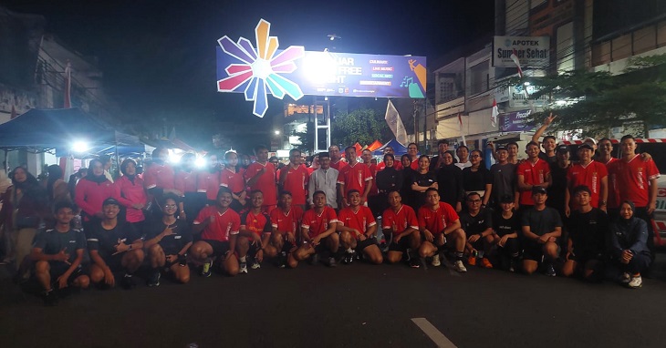 Dengan mengenakan atribut olahraga lengkap, para peserta tampak antusias menempuh rute lari malam. Sepanjang perjalanan, mereka sesekali melambaikan tangan dan menyapa warga yang melintas.