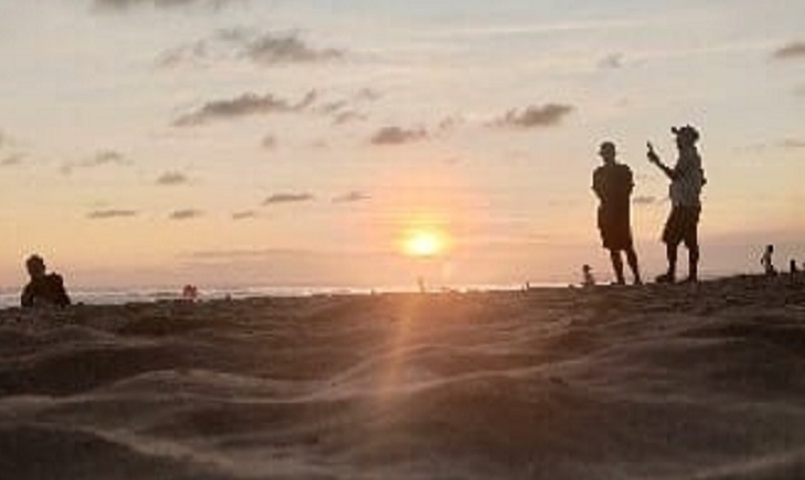 Pantai Barat Pangandaran pada sore hari menjelang malam sambil melihat sunset.